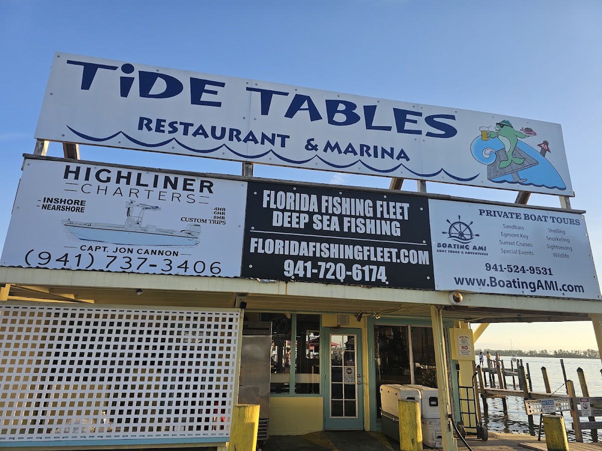 Tide Tables took a punch from Helene and Milton but is still standing. We went on a Sunday, mid afternoon; outside was busy, parking attendant handling visitors but food remains very good. Artie took good care of us at the bar so our drafts were cold and our fried scallops were perfect. Glad to see reemergence of local restaurants, especially those who we frequented and love. Support local restaurants please!