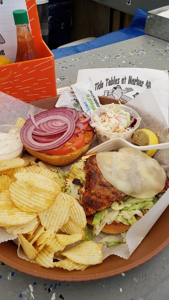 My wife and I were in Bradenton this past week visiting relatives for the holidays. My sisters-in-law wanted to bring us to Tide Tables for dinner one night, and I'm so glad they did! I really enjoyed our dinning experience. We arrived at approximately 4:30 on Sunday December 22nd. It was a beautiful evening so we decided to sit outside. There was a good crowd but we managed to get a table by the water. This is a seafood joint, but they have a handful of non-seafood offerings including: burgers, chicken, and bbq ribs. ...But let's be clear: I came for the seafood! I ordered the Thai Chili Grouper Bites. It was one of the daily specials and it was outstanding! I tried my sister-in-law's Shrimp Po' Boy and it was tasty. For you land lovers the burger was also good. Prices are reasonable and service is very good. Thanks for bringing us here Lisa and Connie!